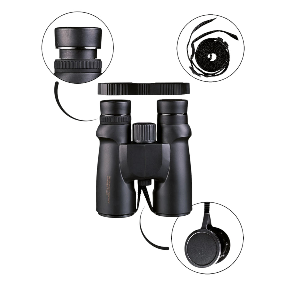 Das Mil-Tec 8 x 42 ist ein robustes, wasserdichtes Fernglas für den Einsatz bei jedem Wetter. Dank der 8-fachen Vergrösserung und mehrfach beschichteten, entspiegelten Linsen liefert es eine klare und kontrastreiche Sicht. Das breite Sehfeld von 105 m auf 1000 m ermöglicht eine gute Orientierung in der Natur. Eine Dioptrienfeineinstellung ermöglicht individuelle Anpassung an die Sehstärke. Zum Schutz sind eine Objektivabdeckung und Okularschutzdeckel integriert. Ein Trageriemen und eine praktische Nylon-Tasche gehören zum Lieferumfang.