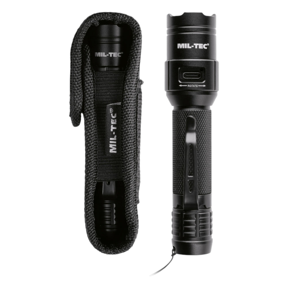 Die Mil-Tec Tactical Mini Recharge ist eine ultrakompakte Taschenlampe mit hoher Leistung. Mit bis zu 450 Lumen erreicht sie eine Leuchtweite von bis zu 125 m und bietet drei Helligkeitsstufen für unterschiedliche Einsatzbereiche. Die integrierte 14500 Lithium-Batterie (800 mAh) wird bequem per USB-C geladen, wodurch die Lampe umweltfreundlich und jederzeit einsatzbereit ist. Dank IPX7-Schutz ist sie wasserdicht und somit auch bei Regen oder im Outdoor-Einsatz zuverlässig. Der Endkappenschalter mit 4 Modi und die Einhand-Bedienung sorgen für einfache Handhabung. Mit Clip und Etui lässt sich die Lampe flexibel tragen und sicher verstauen.