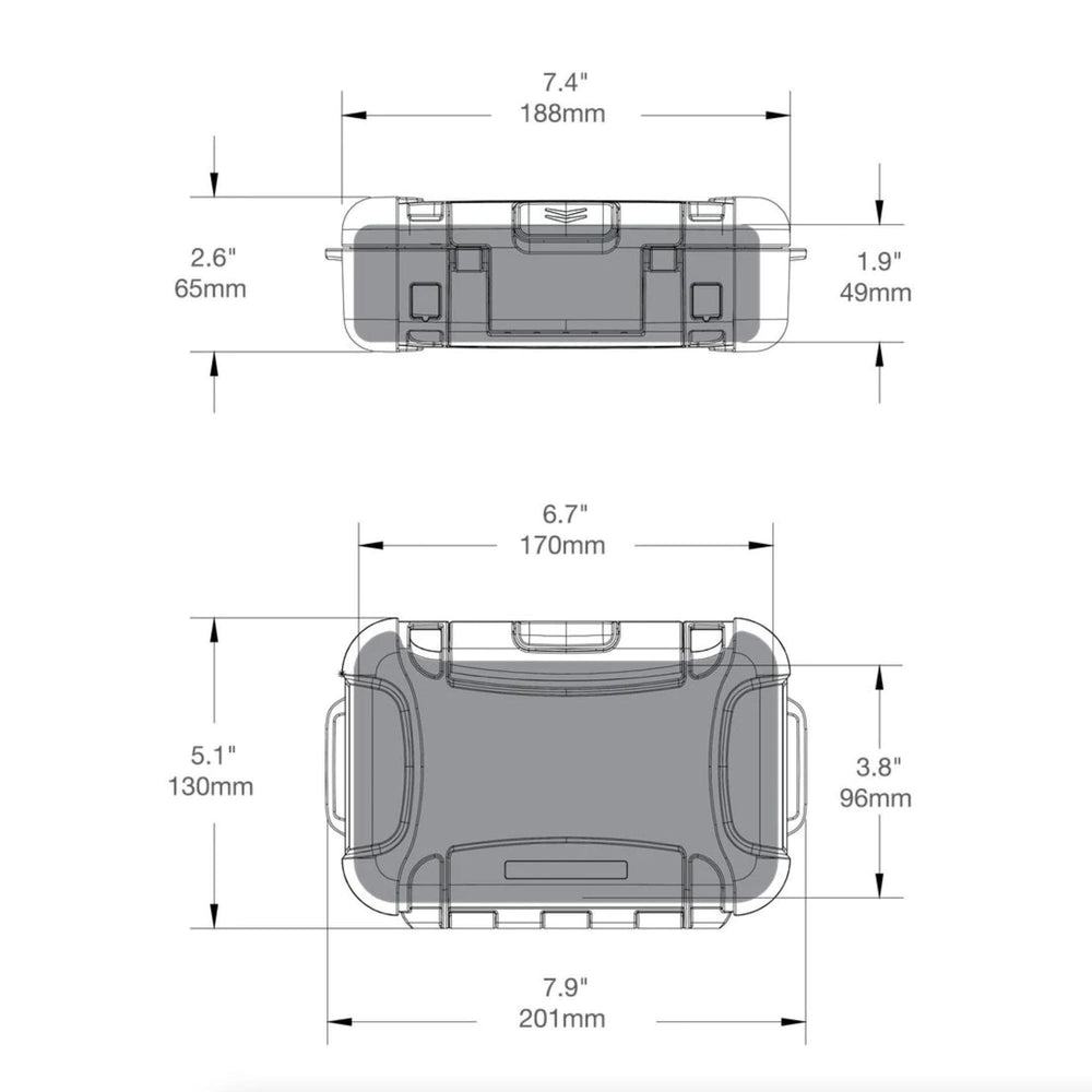 Abmessungen Innenabmessung: 170 x 96 x 49 mm Aussenabmessung: 188 x 130 x 65 mm