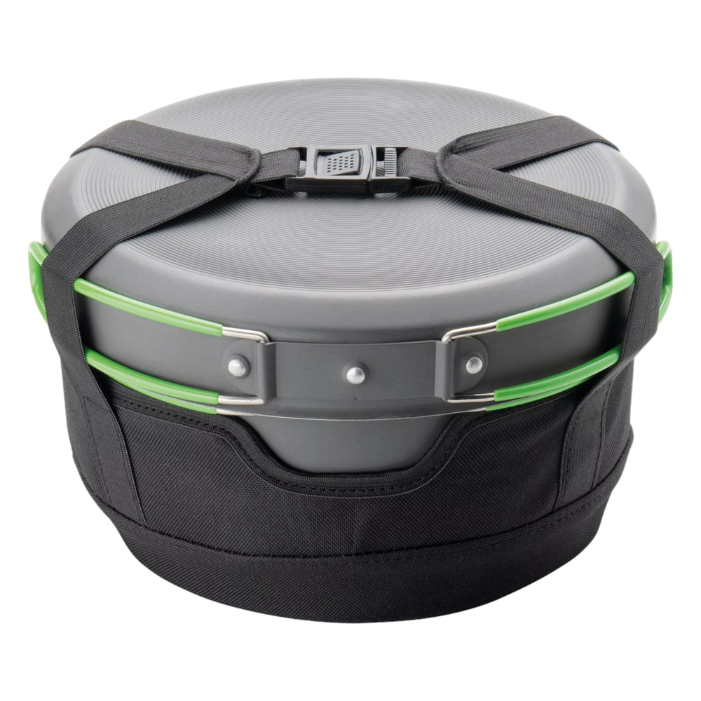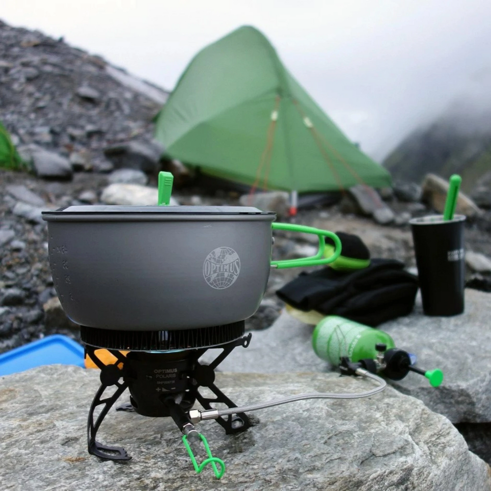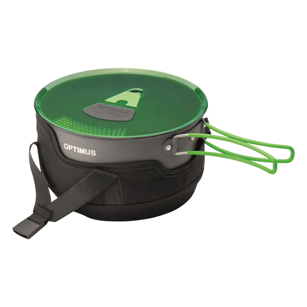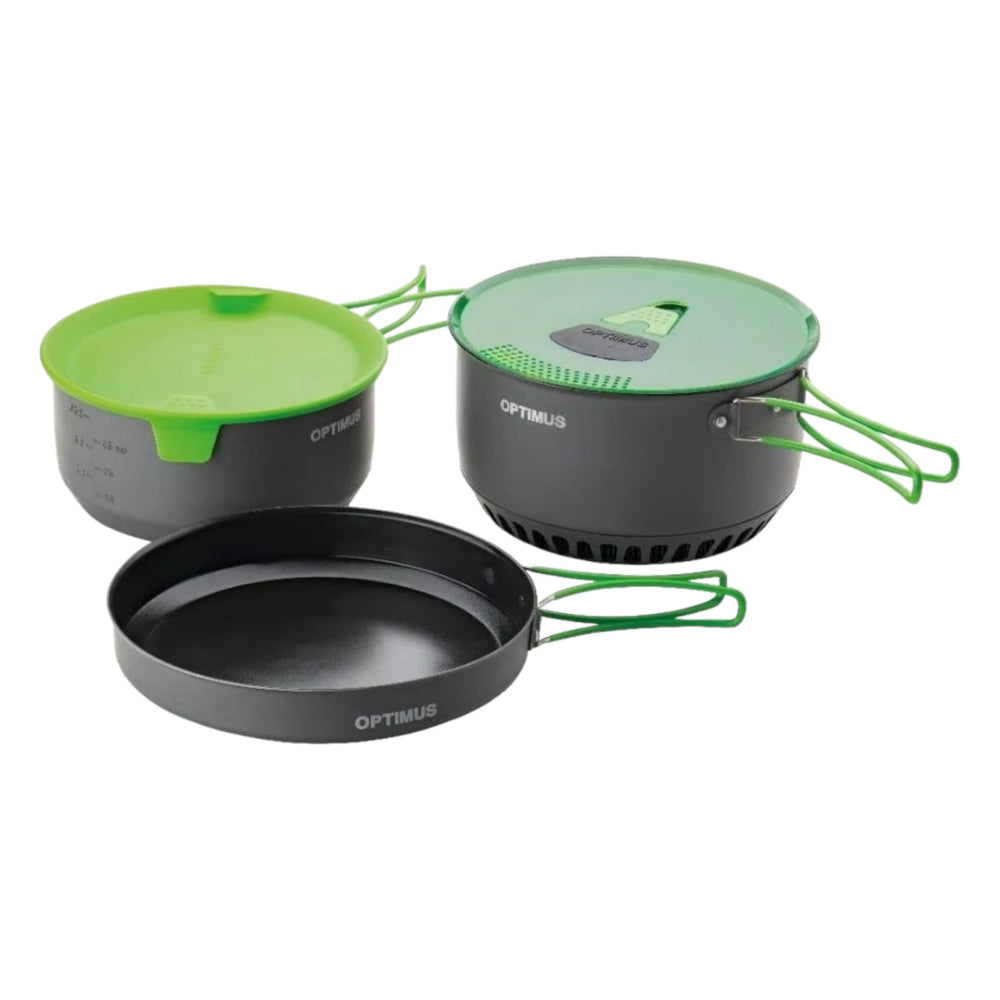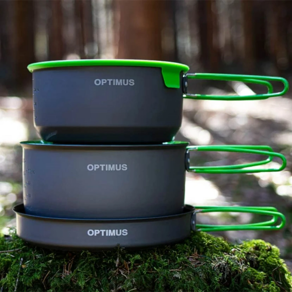 Das Optimus Terra Camp 4 Kochtopfset ist das ideale Equipment für alle Outdoor-Kochbegeisterten und Familien-Camper. Dieses vielseitige, 7-teilige Set aus hart anodisiertem Aluminium bietet robuste Qualität und praktische Features für das Kochen im Freien. Mit einem Gewicht von nur 1160 Gramm ist es leicht zu transportieren und dank der kompakten Bauweise einfach zu verstauen.