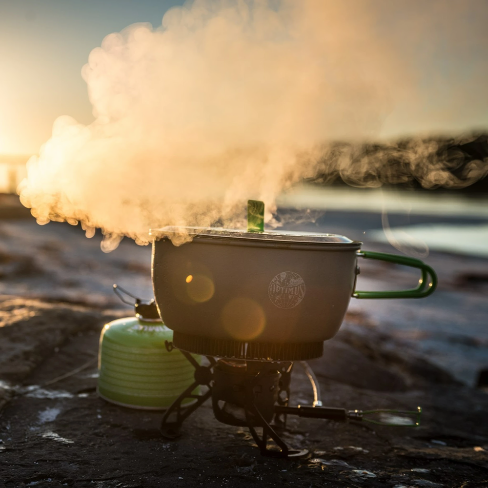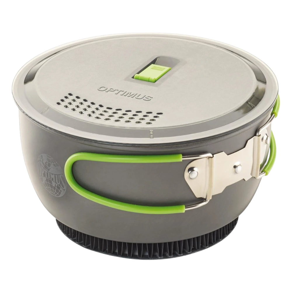 Der Optimus Terra Xpress HE Kochtopf ist ideal für Outdoor-Begeisterte, die Wert auf leichtes Gepäck und effizientes Kochen legen. Mit nur 380 Gramm Gewicht und einem Volumen von 1,75 Litern kombiniert dieser Topf Leichtigkeit mit ausreichend Kapazität für ausgiebige Mahlzeiten. Der Topf ist aus hart anodisiertem Aluminium mit Antihaftbeschichtung gefertigt und bietet somit eine einfache Reinigung und eine langlebige Nutzung.