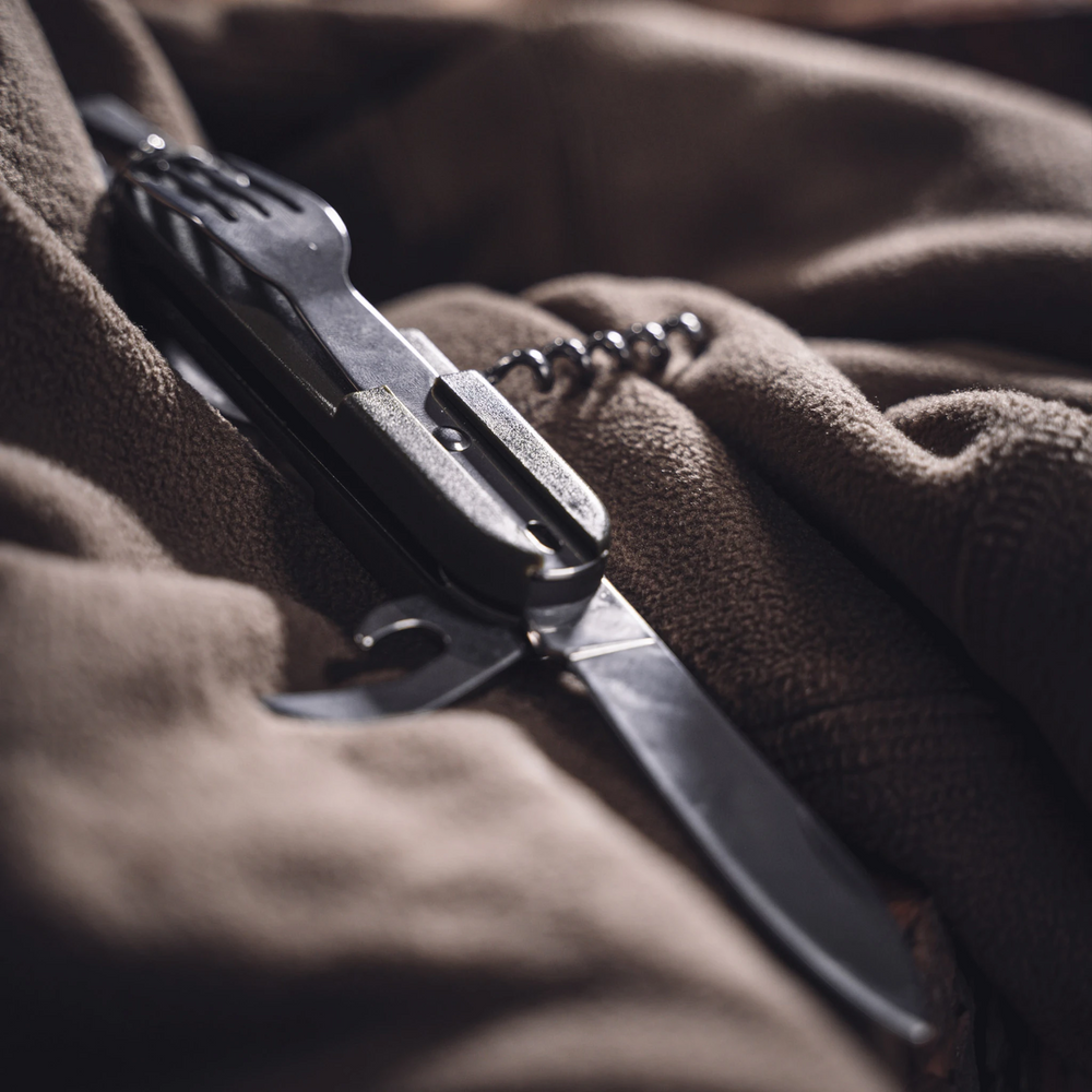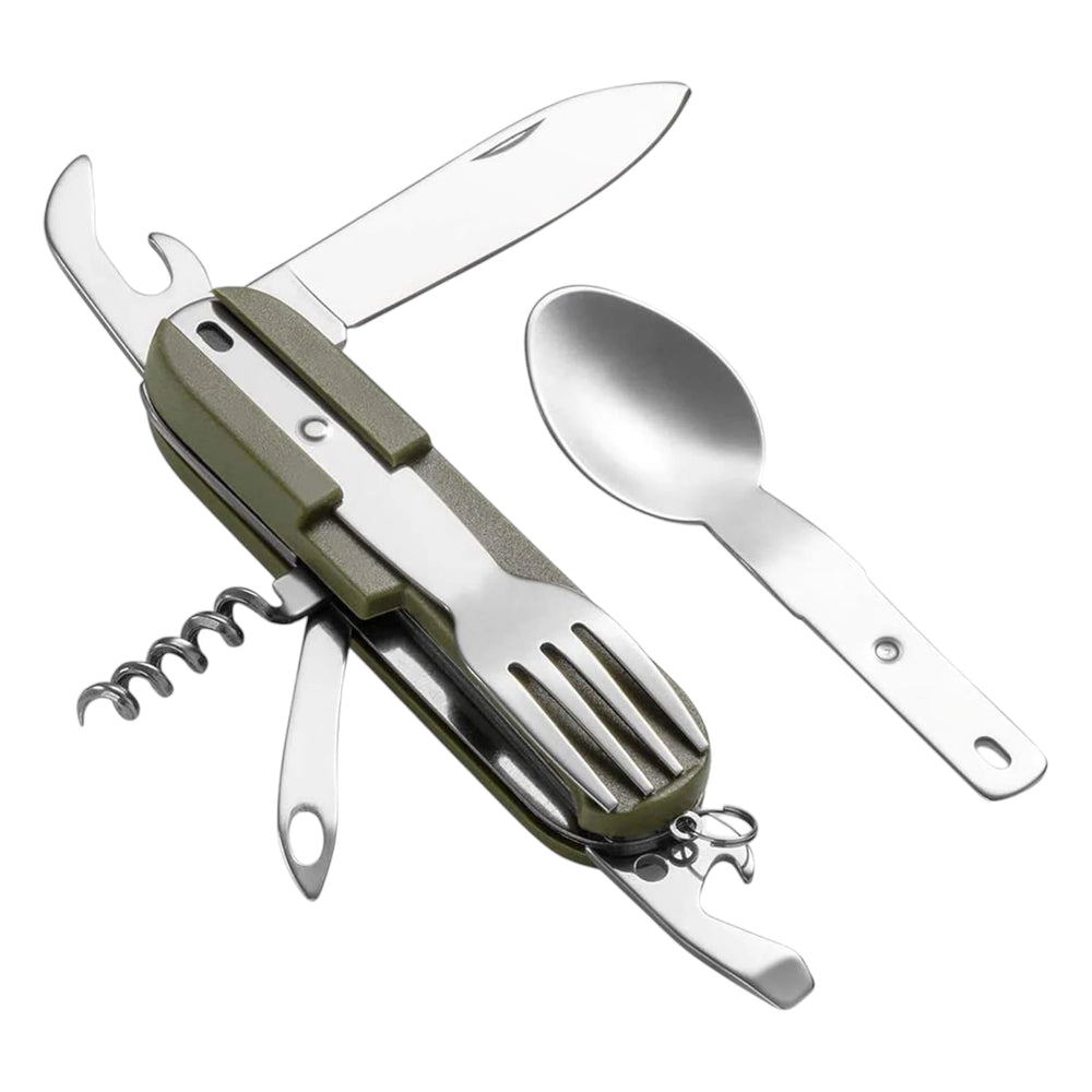 Das Pentagon Tac Maven Olaf Camping Besteck ist dein kompakter Alleskönner für unterwegs – ideal für Camping, Trekking und Outdoor-Abenteuer. Mit einem robusten ABS-Griff und hochwertigen Komponenten aus 420 Edelstahl vereint es ganze 8 Funktionen in einem einzigen Tool. Ob du essen, öffnen, schrauben oder improvisieren musst – das Olaf Besteck ist jederzeit einsatzbereit. Mit nur 130 g und kompakten Massen passt es in jede Tasche und ist dank Schlüsselring auch schnell griffbereit.