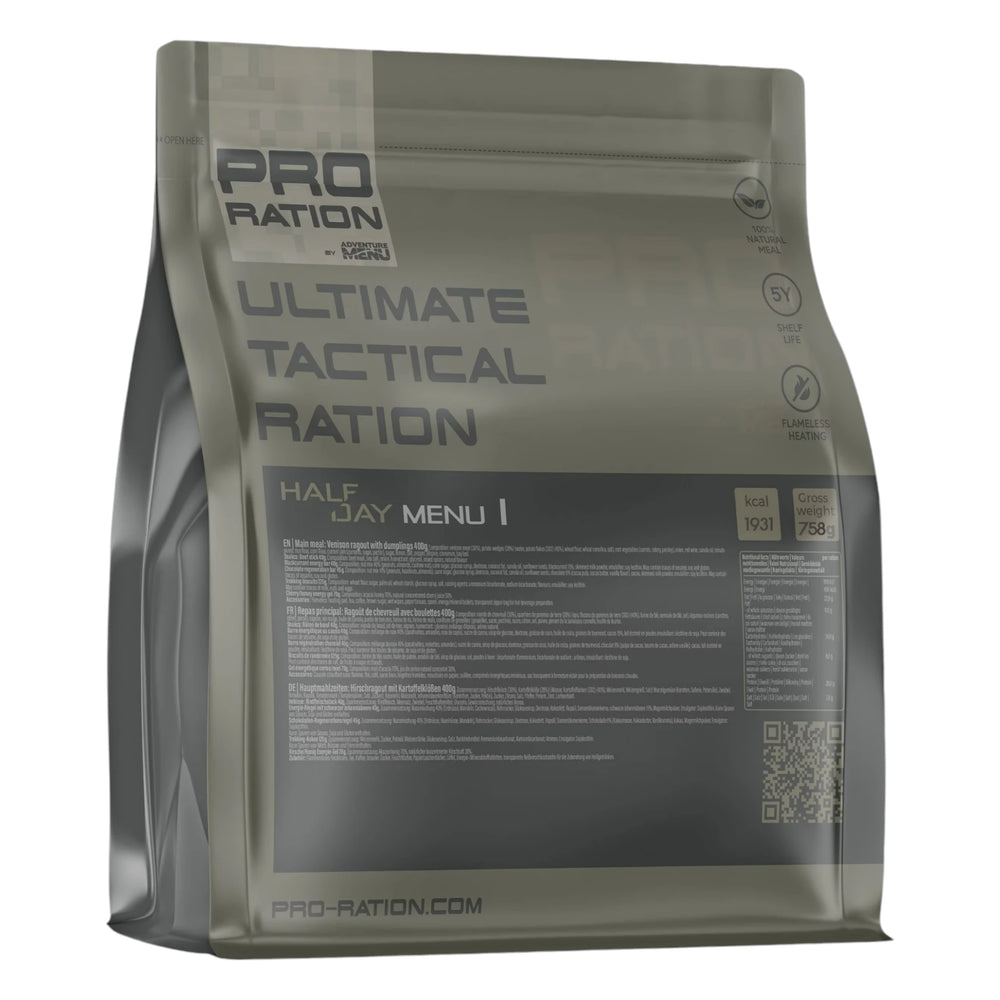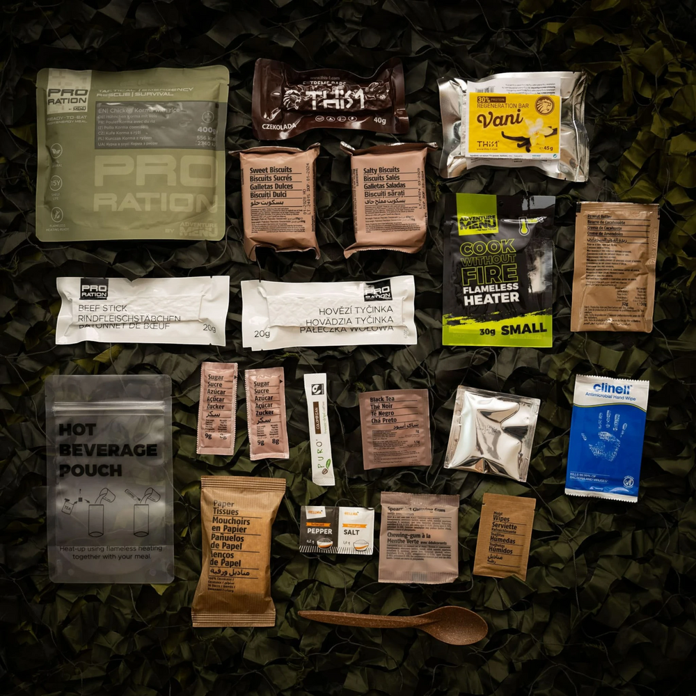 Das Pro-Ration Ultimate Tactical Ration Halbtagesmenü I ist die ideale Verpflegungslösung für anspruchsvolle Outdoor-Abenteuer oder berufliche Einsätze, bei denen schnelle, nahrhafte Mahlzeiten erforderlich sind. Dieses kompakte Paket enthält eine Hauptmahlzeit und eine Vielzahl von Snacks, die reich an natürlichen Nährstoffen sind und den Körper und Geist stärken. Die enthaltene Mahlzeit "Hühnchen Korma mit Reis" bietet den Geschmack von hausgemachtem Essen, während die Snacks wie Rinderstäbchen und Energieriegel zusätzliche Energie liefern. Das Set kommt mit nützlichem Zubehör wie Multivitaminen, einem flammenlosen Heizkissen und weiteren Utensilien, die das Zubereiten und Genießen der Mahlzeit erleichtern.