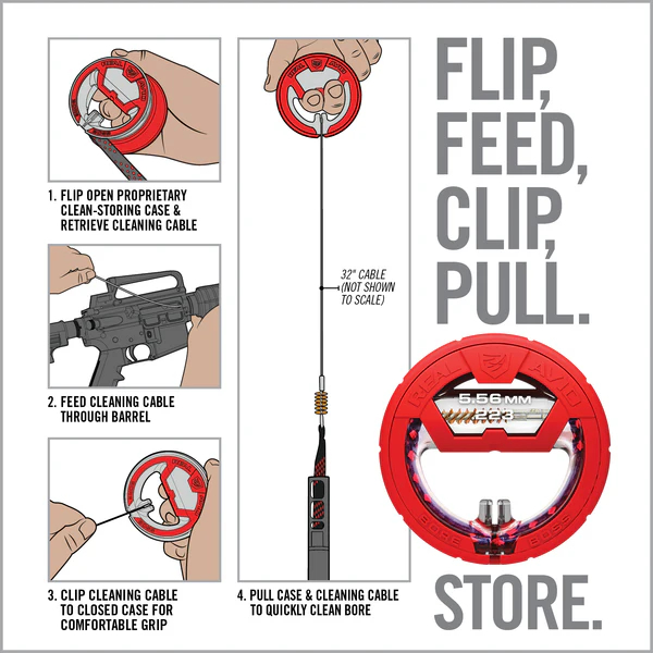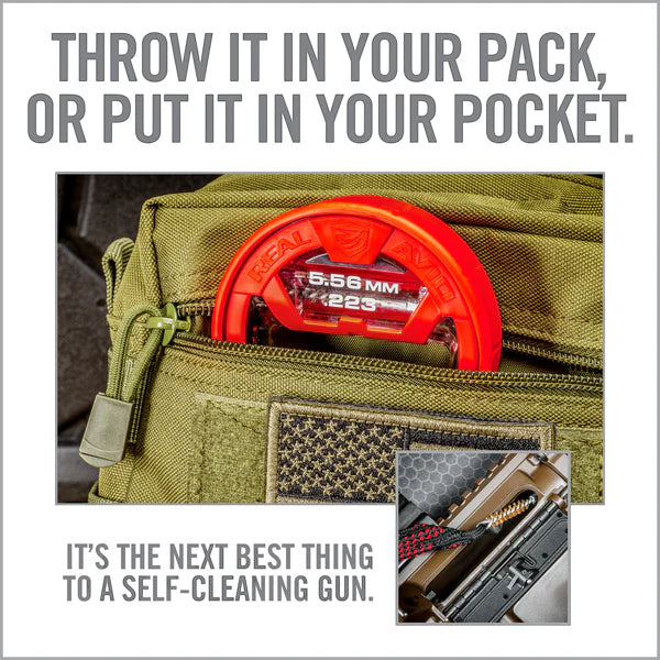 Der Real Avid Bore Boss ist ein cleverer, selbstverstaubarer Laufreiniger, der die Waffenpflege einfach, schnell und sauber macht. Dank des einteiligen Dual-Action-Kabels mit integriertem Flex-Case-Griff lässt sich der Reiniger mühelos durch den Lauf ziehen – ganz ohne verknotete Seile oder loses Zubehör. Die kompakte Hülle dient gleichzeitig als Griff und Aufbewahrung, ideal für unterwegs oder den schnellen Einsatz auf dem Schiessstand. Einfach aufklappen, durchfädeln, ziehen – fertig. Der Bore Boss ist für verschiedene Kaliber erhältlich, von .17 bis 12 GA, und sorgt für eine effektive Reinigung in nur wenigen Sekunden. Ideal für alle, die Wert auf praktische und effiziente Waffenpflege legen.