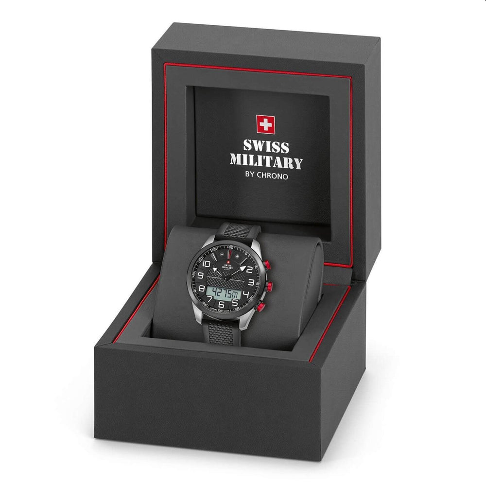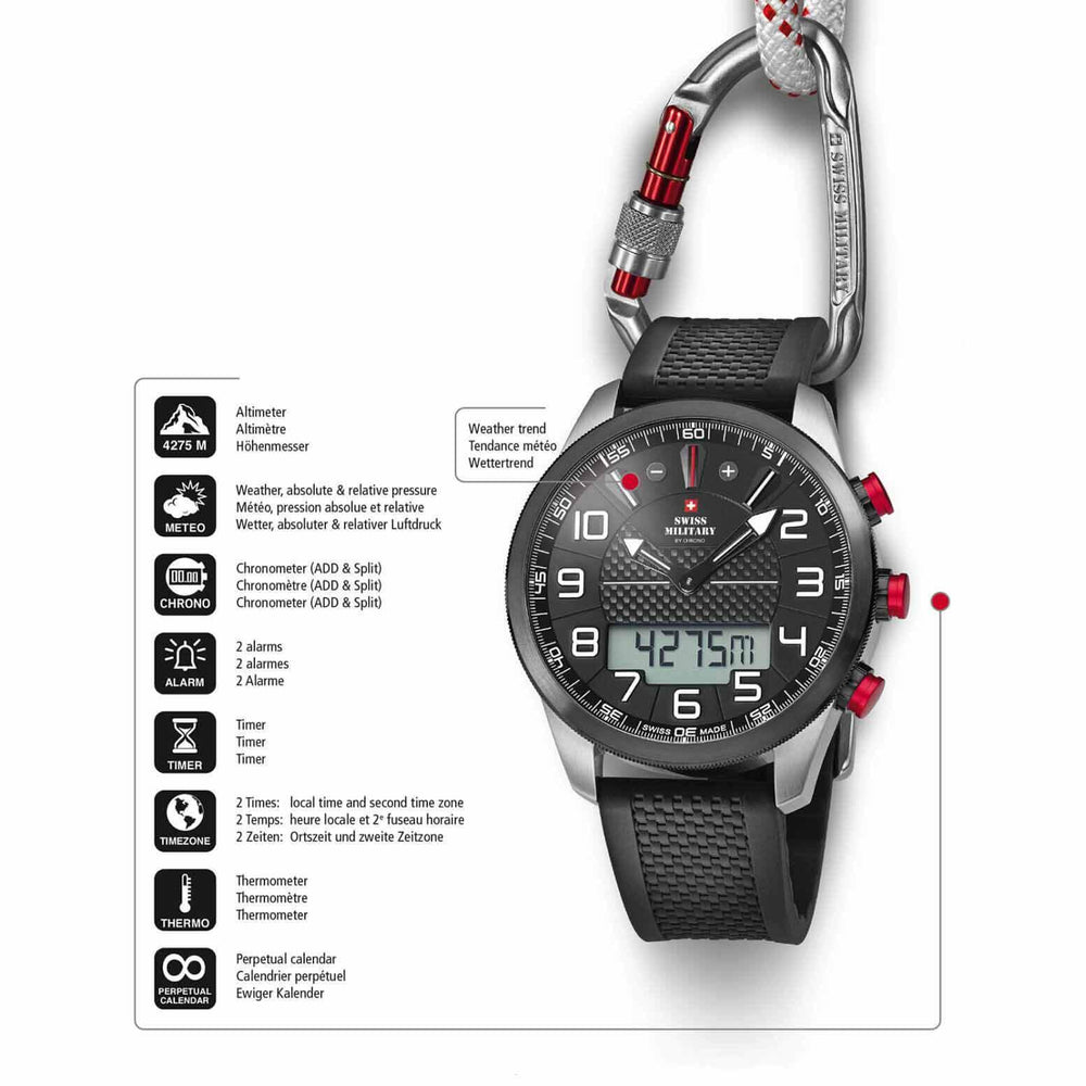 Diese multifunktionale und wasserfeste Uhr hat alles, was Du für abenteuerliche Outdoor Aktivitäten und das Militär brauchst. Sie ist vollgepackt mit hochfunktionalen taktischen Eigenschaften wie ein Höhenmesser, eine Wetteranzeige mit absolutem und relativem Luftdruck, einen Chronometer, einen Zeitzonen-Anzeiger der lokalen und einer weiteren Zeitzone, zwei Alarme, einen Thermometer und einer Timerfunktion. Mit diesen vielseitigen Funktionen bist Du für jede Situation gewappnet. Ob am Berg, im Wald, am Wasser - bei Tag oder bei Nacht, diese Uhr wird sich als dein treuster Begleiter auf deinen Abenteuer und im Militär erweisen.
