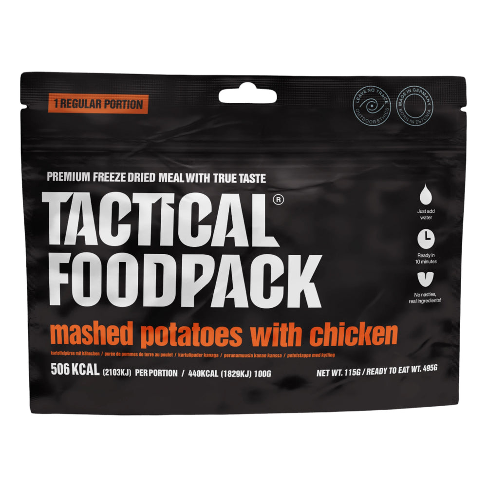 Erlebe den wohltuenden Geschmack von cremigem Kartoffelpüree mit zartem Hähnchenfilet – perfekt für deine Outdoor-Abenteuer. Hergestellt mit echter Butter, bietet das Püree eine samtige Textur und reichhaltigen Geschmack, während frische Petersilie und Gemüse wie Karotten und Zwiebeln das Gericht abrunden. Diese sättigende Mahlzeit ist einfach zuzubereiten und liefert langanhaltende Energie – ideal für Wanderungen, Camping oder eine schnelle Mahlzeit unterwegs. In einer grossen Portion erhältlich, um auch den grössten Appetit zu stillen.