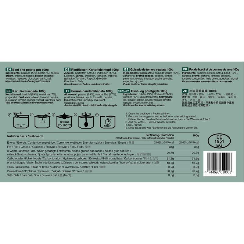 Eine ausgewogene und vollwertige Ernährung nach für eine hochintensive Outdoor-Aktivität: die Tactical Foodpack Outdoornahrung sorgen für den nötigen Energieschub den Du brauchst und das mit überraschend vielfältigem Geschmack. Rindfleisch-Kartoffeltopf ist Tactical Foodpacks Variante vom Prager Gulasch.