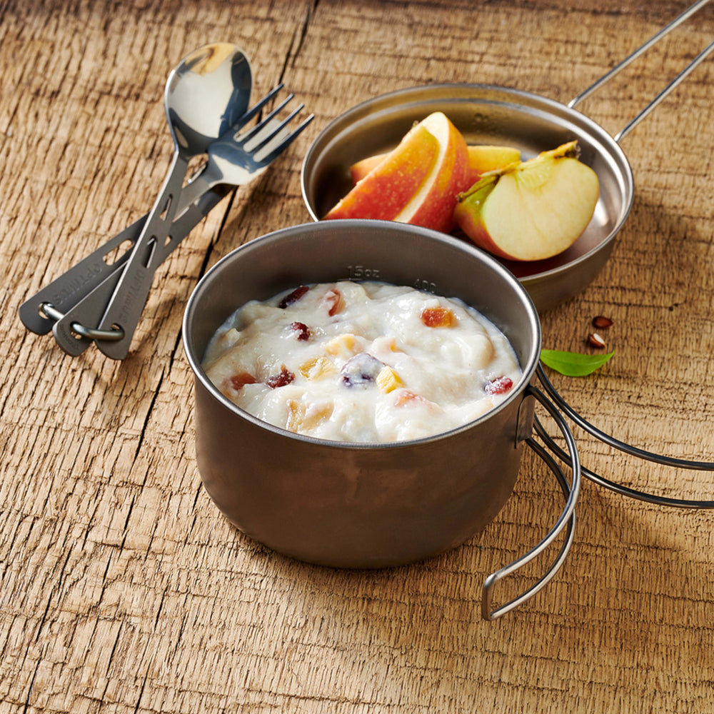 Diese Griessspeise mit Früchten ist der perfekte süsse Abschluss nach einem aktiven Outdoor-Tag. Die Kombination aus cremigem Griess und fruchtiger Note sorgt für echten Wohlfühlcharakter – besonders bei kaltem Wetter. Mit sechs Portionen eignet sich das Dessert ideal für Gruppen oder längere Touren. Es lässt sich einfach mit Wasser zubereiten und bringt Abwechslung in jede Outdoor-Verpflegung. Trotz klassischer Zutaten ist es kein vegetarisches Produkt, aber ein Genuss für alle, die es süss mögen. Die lange Haltbarkeit von 15 Jahren macht es auch als Notvorrat interessant.