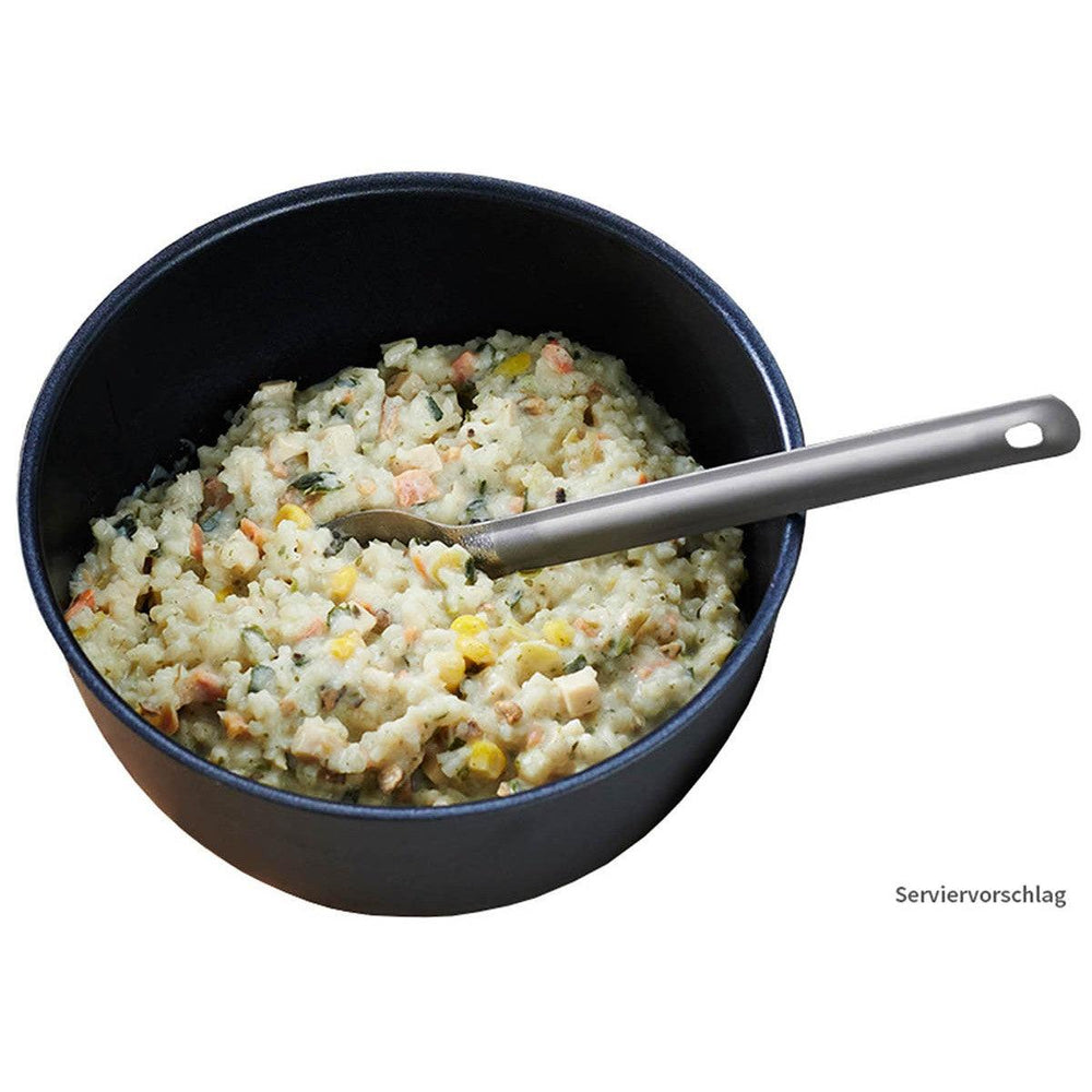 Das Trek'n Eat "PS" Huhn mit Sahnegemüse und Reis ist eine köstliche Mahlzeit für unterwegs. Das Gericht besteht aus zartem Hühnerfleisch, cremigem Sahnegemüse und köstlichem Reis. Es ist einfach zuzubereiten, indem man heißes Wasser hinzufügt und kurz ziehen lässt. Das Produkt ist leichtgewichtig und perfekt für Outdoor-Abenteuer, Camping oder Reisen. Es bietet eine ausgewogene und nahrhafte Mahlzeit, die den Energiebedarf deckt und den Hunger stillt.