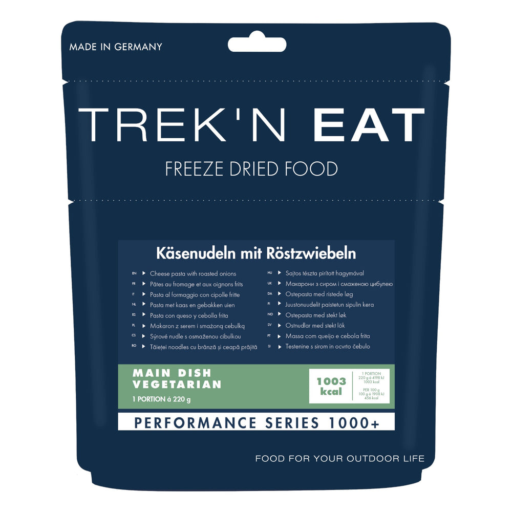 Die Trek'n Eat Käsenudeln mit Röstzwiebeln sind eine köstliche Mahlzeit für unterwegs. Die cremigen Käsenudeln werden durch knusprige Röstzwiebeln ergänzt, die für eine leckere Geschmackskombination sorgen. Einfach mit heißem Wasser aufgießen, umrühren und kurz ziehen lassen. Die Käsenudeln sind leichtgewichtig und einfach zu transportieren, ideal für Outdoor-Abenteuer, Camping oder Reisen. Sie bieten eine schnelle und nahrhafte Mahlzeit, die den Hunger stillt und den Gaumen erfreut.