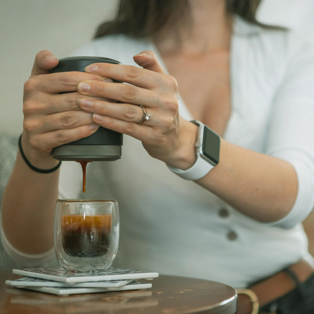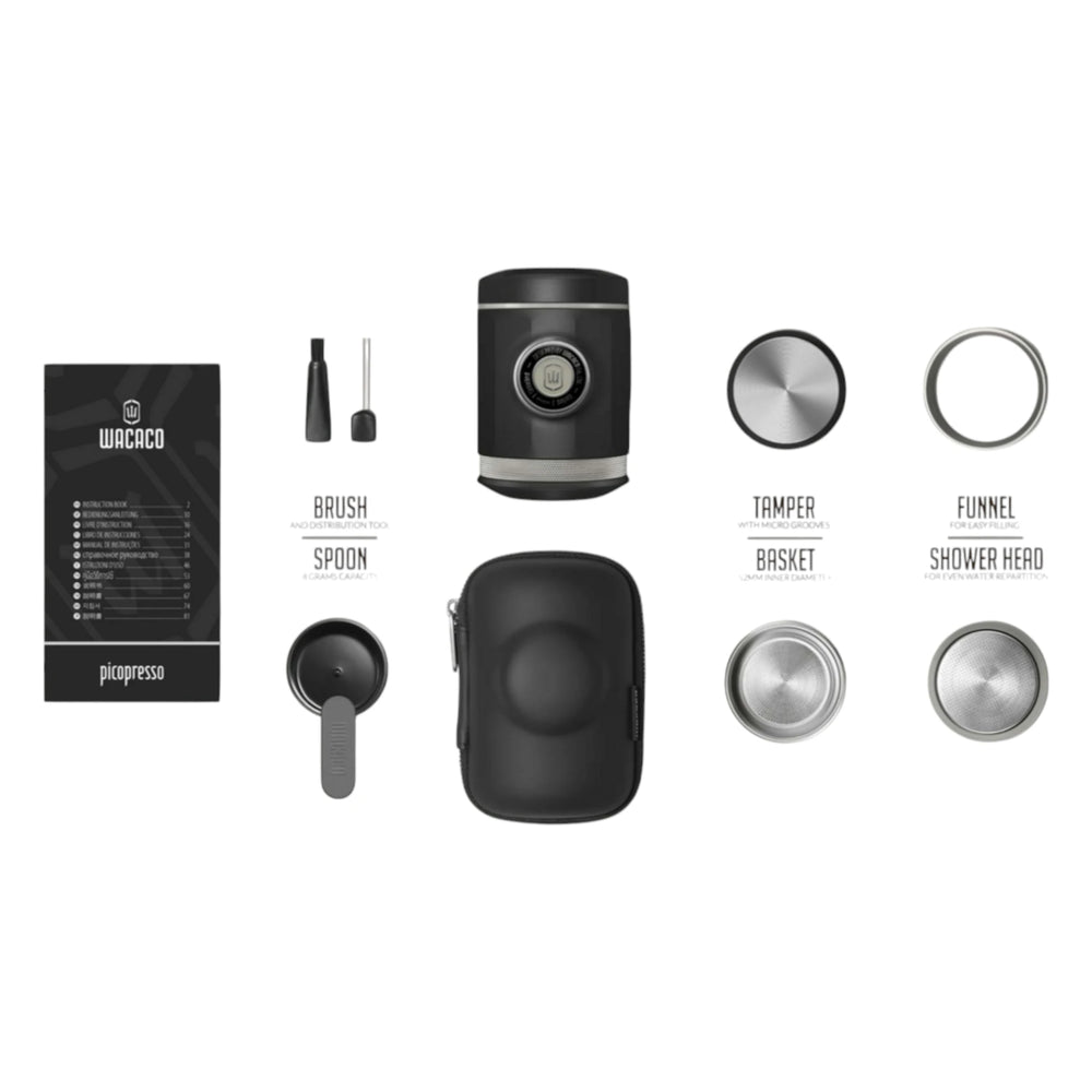Die Wacaco Picopresso ist die kompakteste Espressomaschine mit echtem Siebträger – für Espresso in Café-Qualität, wann und wo immer du willst. Mit einem 52 mm Edelstahl-Filterkorb für 18 g Kaffeepulver und bis zu 18 bar Druck liefert sie intensiven Geschmack und perfekte Crema. Ideal für ambitionierte Outdoor-Baristas, die auch unterwegs keine Kompromisse machen wollen. Das robuste Design passt in jede Tasche, die Handhabung ist manuell und völlig stromunabhängig. Inklusive praktischer Schutzhülle für den sicheren Transport.